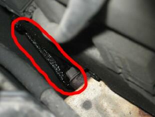 そのクラッチマスターシリンダー下部にオイルにじみがあります。この場合はクラッチマスターシリンダーのOHが必要になってきます。 |