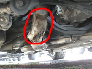 車前方から見て向かって左側(運転席側)の遮熱板にサビ・クサリがよく見られます。