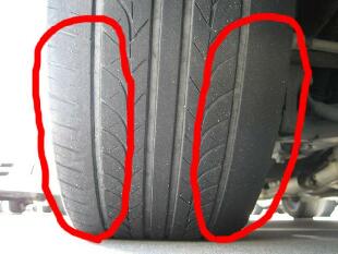 そのままにして走行していると、このようにタイヤが片べりすることがあります。