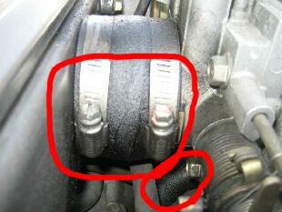 また、スロットル下付近のホースにもブローバイガスがベットリ(2枚目)ということもあります。